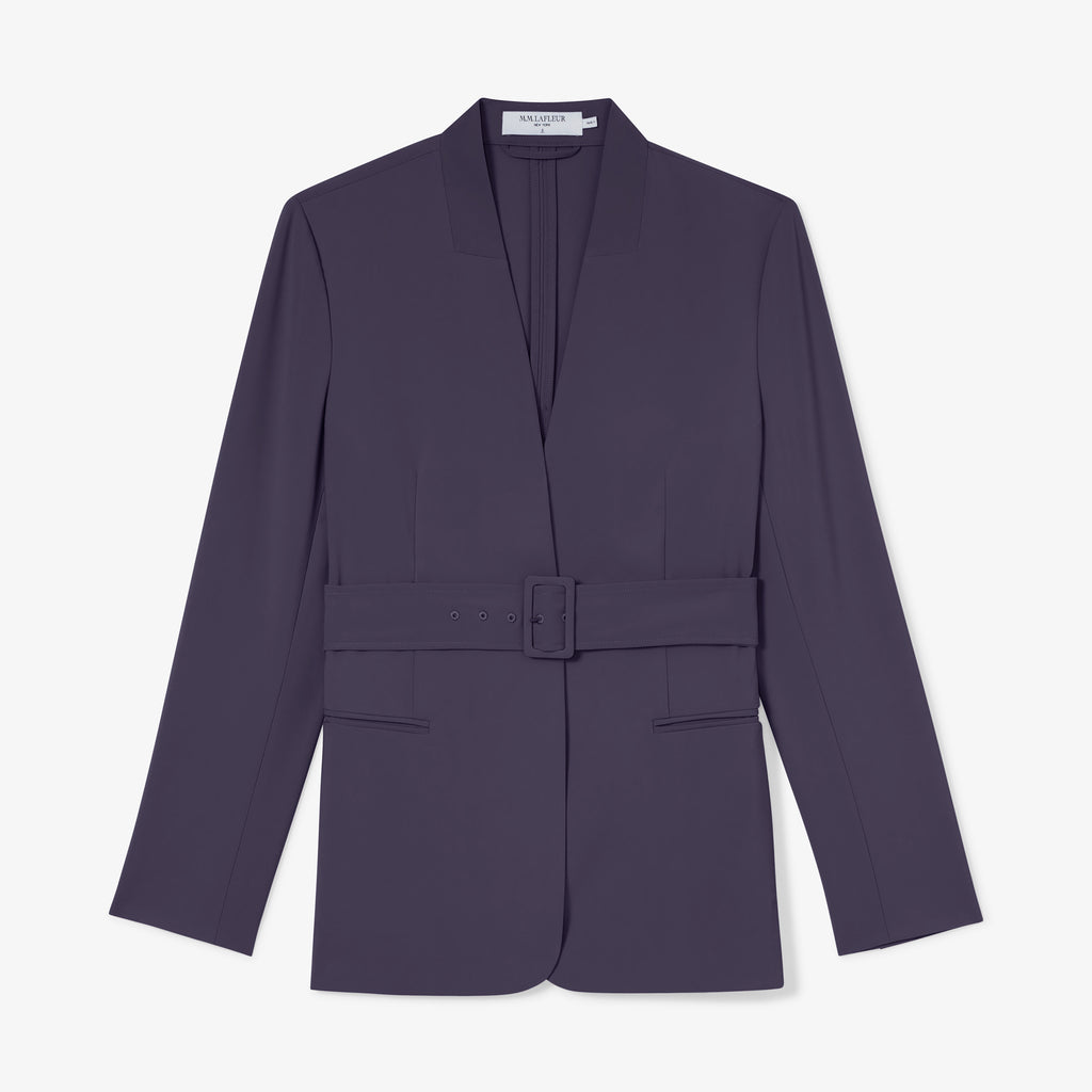 This collarless blazer is made from a machine-washable, wrinkle-resistant fabric that’s designed for travel and suitable for every day. Cinch the matching belt for an hourglass silhouette, or remove it for a minimalist, streamlined look.