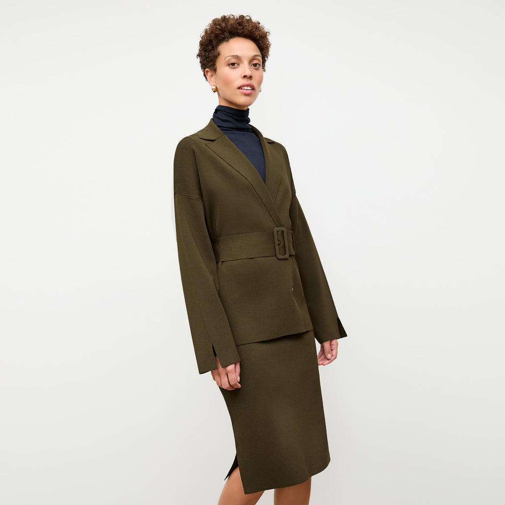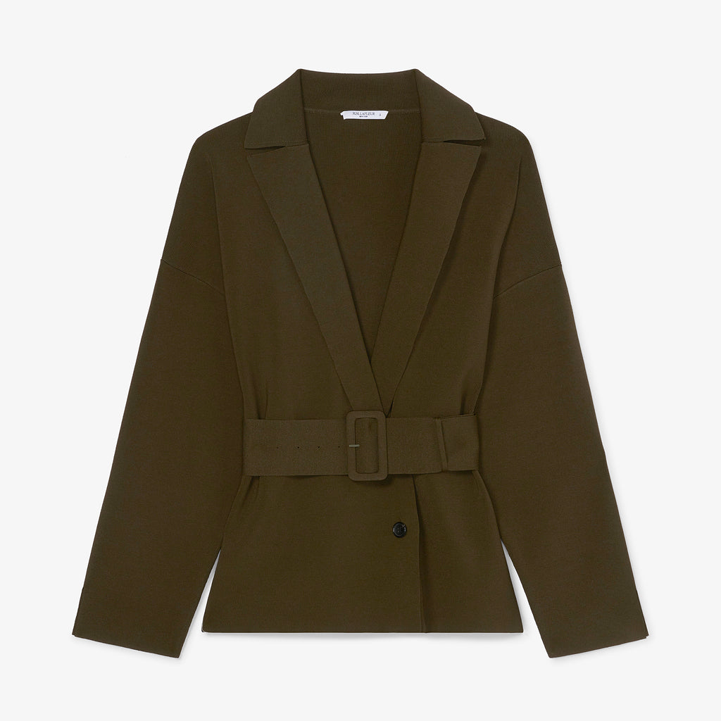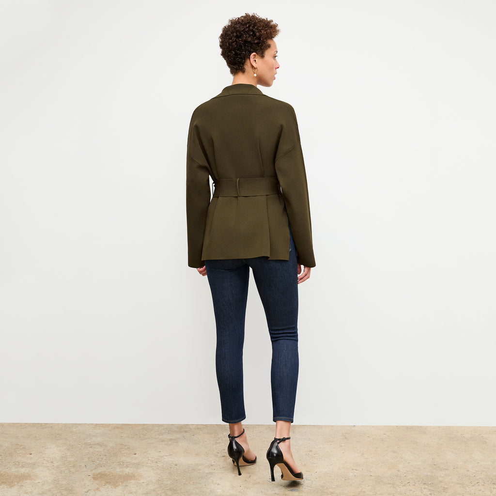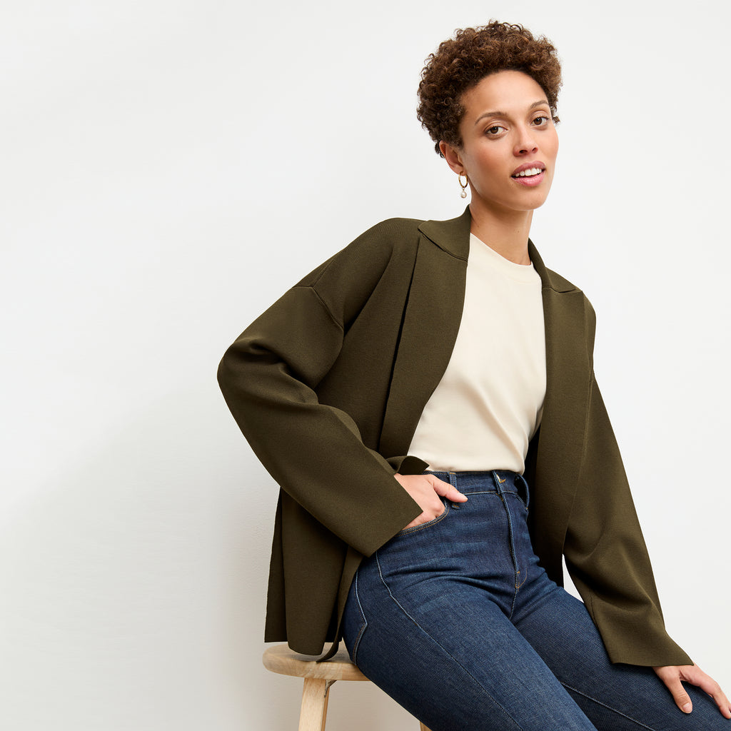 One of the more fashion-forward members of our jardigan family, the Yuwei features an oversized fit, wide sleeves, bold buttons, and an optional waist belt. Make it a full knit suit with the matching Harlem skirt.